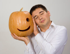 Pumpkin exudes palpable relief after man cuts second hole in it